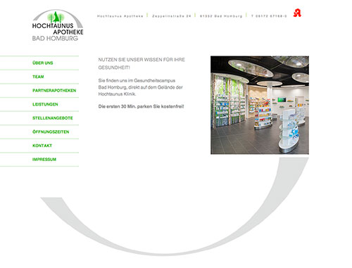 Hochtaunus-Apotheke // Layout, Programierung // Fotos